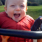 Happy Easter!! Choklutt, choklutt, choklutt. Now I see what all the fuss is about. I got some eggs for Easter which were not like normal eggs - they were made of this brown stuff called 'choklutt' and Mummy and Daddy gave me a little taste of it - it's yummy. We went to visit Gramps, Essie and Uncle Chris. I hadn't seen them for ages so it was lots of fun. I have learnt to say 'uh-oh' which everyone thinks is really, really cute - so I say it a lot!!